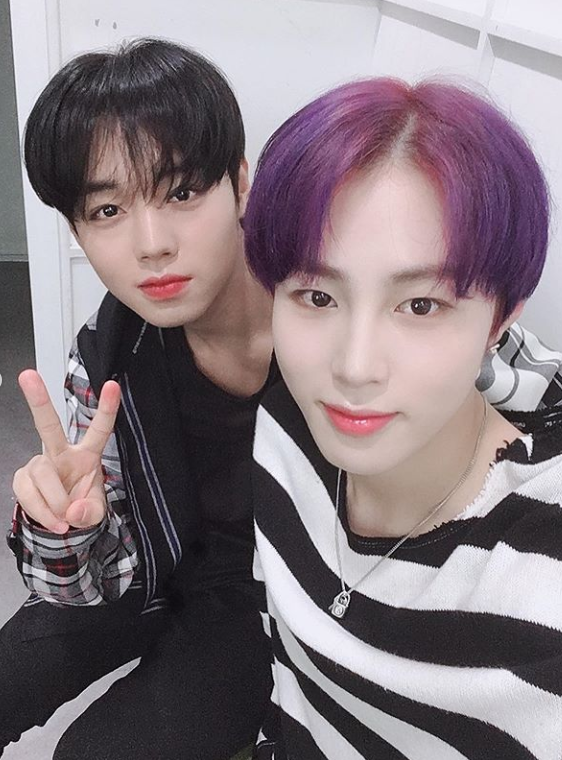 사진 속 보라색 머리의 하성운은 박지훈과 함께 다정하게 카메라를 보고 있다. 이제는 솔로 가수로 거듭난 두 사람의 눈부신 비주얼이 눈길을 끈다.