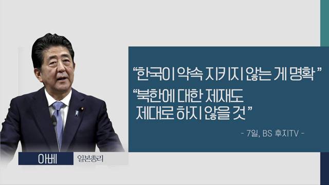 그런데 아베 총리와 측근들이 최근 '수출 관리를 둘러싼 부적절한 사안'이 북한과 관련됐다는 주장을 흘리고 있습니다. 하기우다 고이치 간사장 대행은 "수출품의 행선지를 알 수 없는 상황이 발생했다. 군사 용도로 전용이 가능한 물품이 북한으로 흘러갈 우려가 있다"고 말했습니다. 또 다른 자민당 간부는 "특정 시기에 한국 기업에서 에칭가스 관련 물품의 대량 발주가 급증했는데, 군사 전용 물품이 북한에 전달됐을 우려가 있다"고 밝혔습니다.
