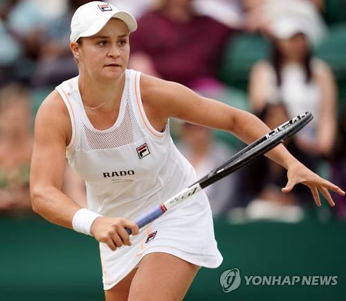 epa07703027 Ashleigh Barty of Australia returns to Alison Riske of USA in their fourth round match during the Wimbledon Championships at the All England Lawn Tennis Club, in London, Britain, 08 July 2019. EPA/WILL OLIVER EDITORIAL USE ONLY/NO COMMERCIAL SALES