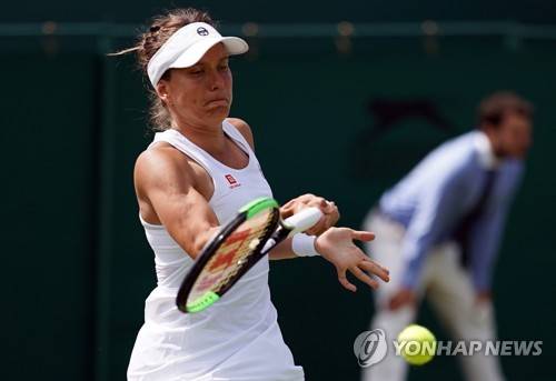 epa07703077 Barbora Strycova of the Czech Republic returns to Elise Mertens of Belgium in their fourth round match during the Wimbledon Championships at the All England Lawn Tennis Club, in London, Britain, 08 July 2019. EPA/NIC BOTHMA EDITORIAL USE ONLY/NO COMMERCIAL SALES