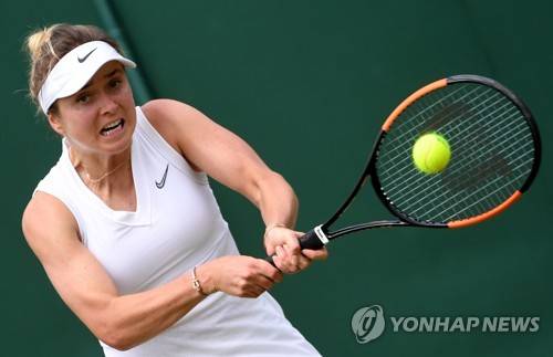 epa07703176 Elina Svitolina of Ukraine in action against Petra Martic of Croatia during their fourth round match for the Wimbledon Championships at the All England Lawn Tennis Club, in London, Britain, 08 July 2019. EPA/FACUNDO ARRIZABALAGA EDITORIAL USE ONLY/NO COMMERCIAL SALES