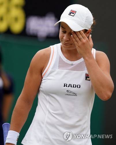 epa07703199 Ashleigh Barty of Australia plays Alison Riske of USA in their fourth round match during the Wimbledon Championships at the All England Lawn Tennis Club, in London, Britain, 08 July 2019. EPA/WILL OLIVER EDITORIAL USE ONLY/NO COMMERCIAL SALES