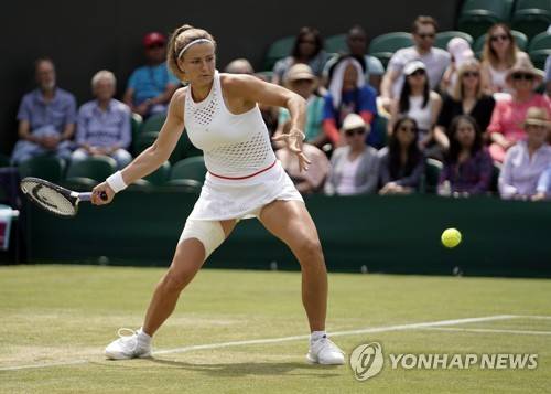 epa07703498 Karolina Muchova of the Czech Republic returns to compatriot Karolina Pliskova in their fourth round match during the Wimbledon Championships at the All England Lawn Tennis Club, in London, Britain, 08 July 2019. EPA/WILL OLIVER EDITORIAL USE ONLY/NO COMMERCIAL SALES