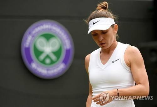epa07703532 Simona Halep of Romania in action against Cori Gauff of the USA during their fourth round match for the Wimbledon Championships at the All England Lawn Tennis Club, in London, Britain, 08 July 2019. EPA/ANDY RAIN EDITORIAL USE ONLY/NO COMMERCIAL SALES