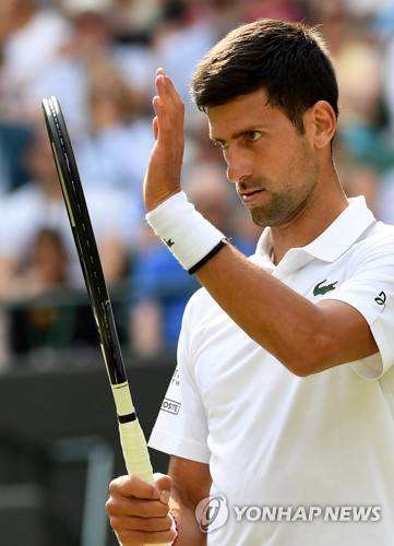 epa07703906 Novak Djokovic of Serbia in action against Ugo Humbert of France during their fourth round match for the Wimbledon Championships at the All England Lawn Tennis Club, in London, Britain, 08 July 2019. EPA/ANDY RAIN EDITORIAL USE ONLY/NO COMMERCIAL SALES