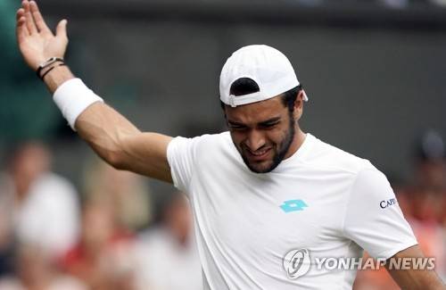 epa07704071 Matteo Berrettini of Italy plays Roger Federer of Switzerland in their fourth round match during the Wimbledon Championships at the All England Lawn Tennis Club, in London, Britain, 08 July 2019. EPA/NIC BOTHMA EDITORIAL USE ONLY/NO COMMERCIAL SALES