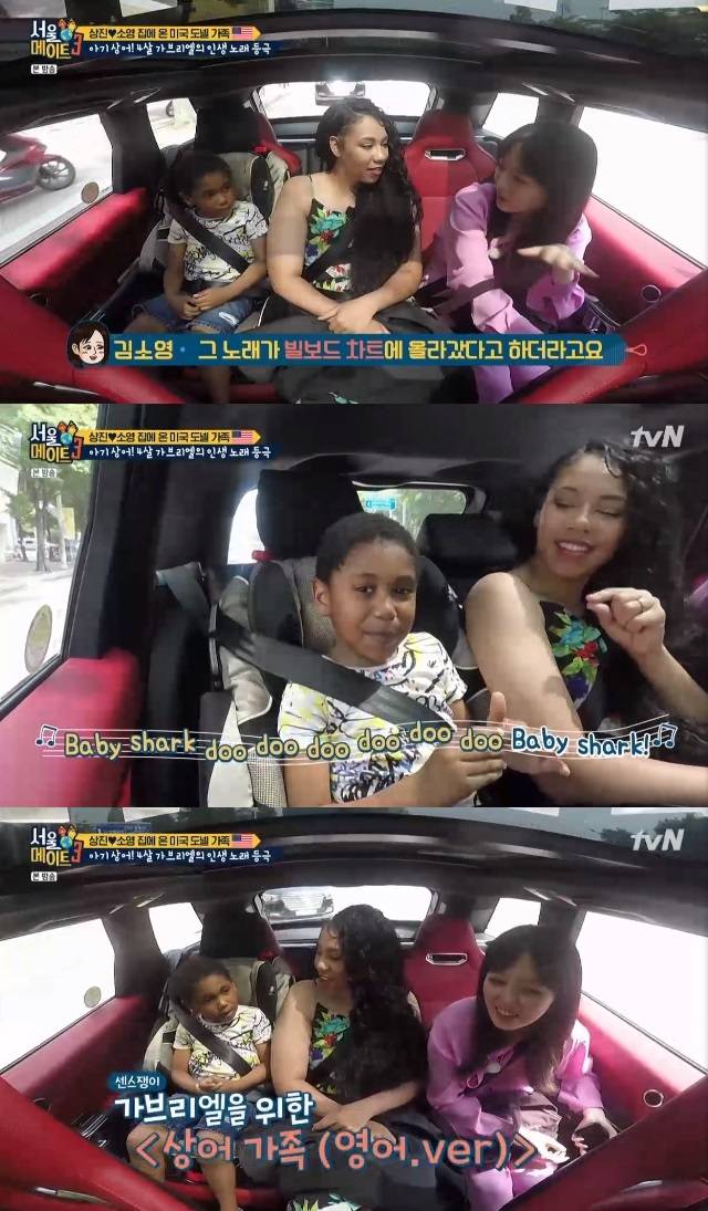 이어 차로 이동하며 김소영은 가브리엘에게 '상어가족' 동요를 소개했다.