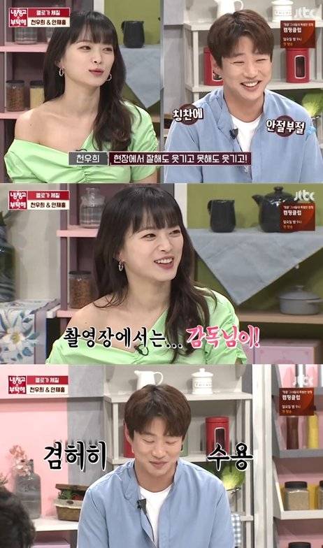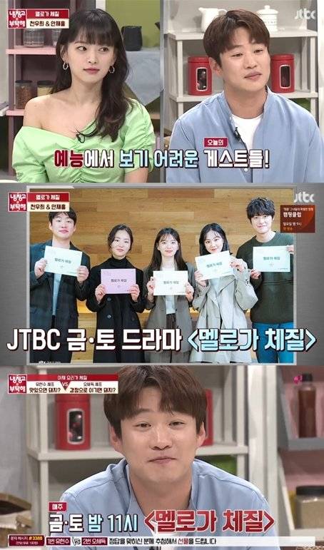지난 8일 오후 방송된 JTBC '냉장고를 부탁해'에서는 드라마 '멜로가 체질'의 천우희, 안재홍이 게스트로 출연했다.
