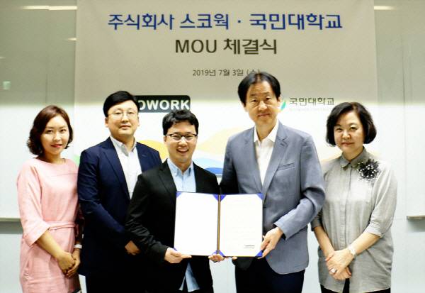 국민대학교(총장 유지수)와 ㈜스코웍(대표이사 이준수)이 지난 3일 오후 2시 국민대 산학협력관에서 산학협력 MOU를 체결했다고 밝혔다.