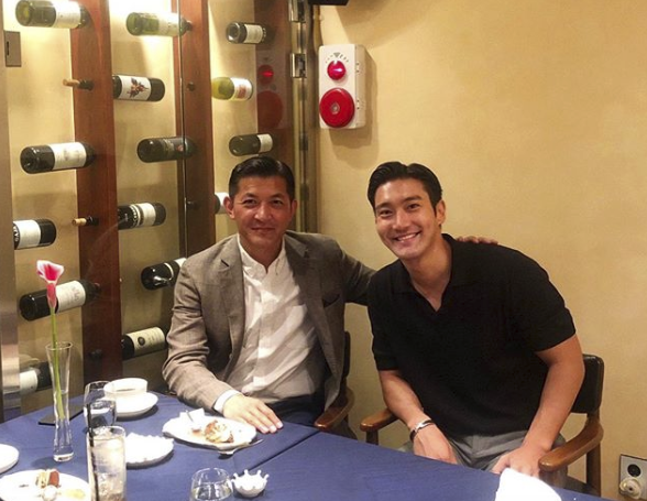 함께 올린 사진에서 최시원은 기업인 홍정욱과 나란히 앉아 식사를 즐긴 인증샷을 찍고 있다.