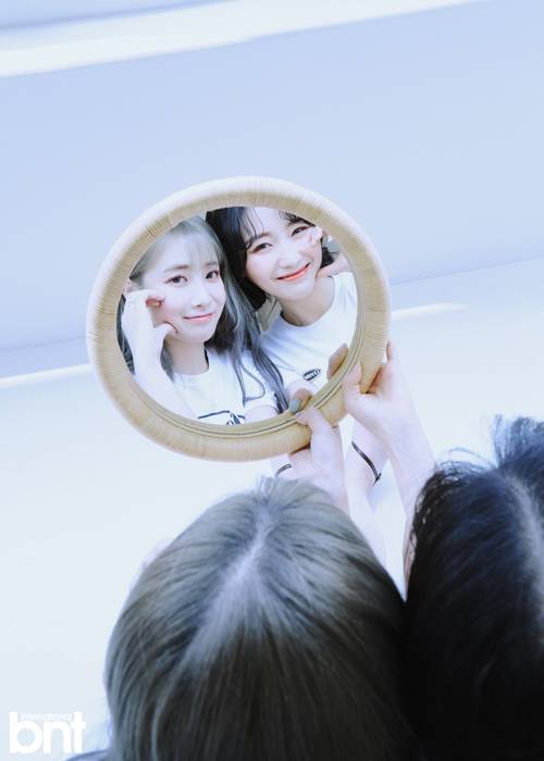 유지애: 수정이와 둘이 화보를 찍은 게 처음이다. 사실 멤버들한테는 비밀이지만 수정이가 내 최애 멤버다(웃음). 물론 다른 멤버랑 찍어도 좋겠지만 수정이와 찍게 돼서 정말 행복했다. 우리가 단둘이 찍는 일이 흔하진 않을테니. 또 bnt 화보를 처음 찍게 돼 영광이었다.