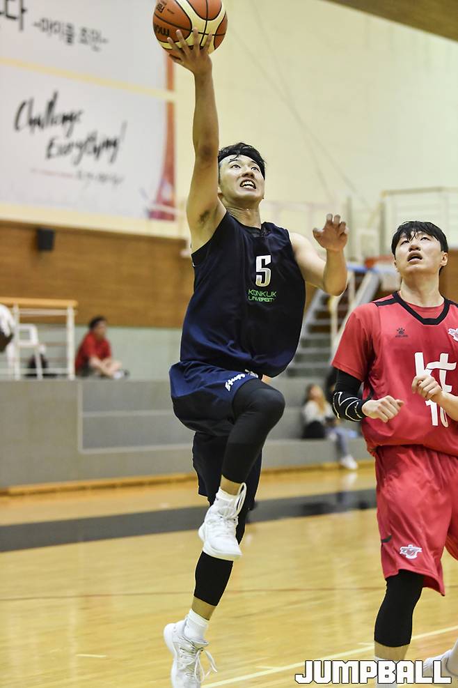 [점프볼=수원/홍기웅 기자] 10일 수원 KT 올레 빅토리움에서 열린 KT와 건국대의 연습경기. 건국대 최진광이 파고들면서 레이업을 올려넣고 있다. 2019-07-10 홍기웅(woong_sport@naver.com)