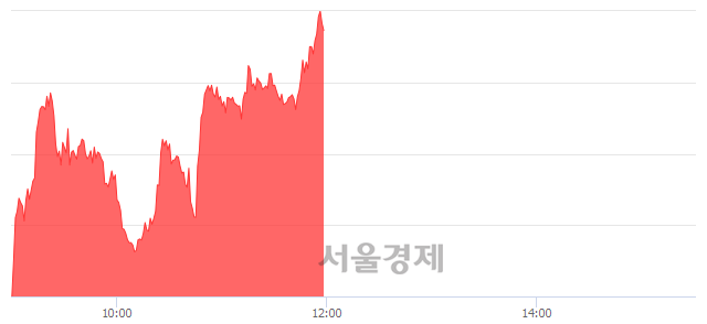 오후 12:00 현재 코스피는 48:52으로 매수우위, 매도강세 업종은 전기전자업(1.91%↑)