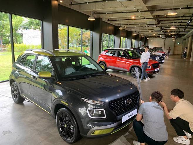 현대차는 11일 경기 용인시의 한 카페에서 스포츠유틸리티차(SUV)인 '베뉴' 출시 행사를 열고 본격적인 판매에 들어갔다.