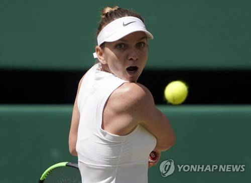 epa07709878 Simona Halep of Romania returns to Elina Svitolina of Ukraine in their semi final match during the Wimbledon Championships at the All England Lawn Tennis Club, in London, Britain, 11 July 2019. EPA/NIC BOTHMA EDITORIAL USE ONLY/NO COMMERCIAL SALES