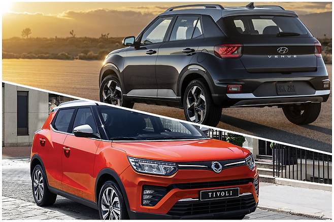 베뉴 '효율·가격·험로주행'vs티볼리 '크기·성능·4WD'
