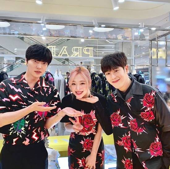 공개된 사진 속 설리는 배우 안재현과 그룹 블락비 멤버 피오와 함께 포즈를 취하고 있다 . 특히 안재현과 피오는 설리에게 꽃받침을 해주며 친밀함을 뽐내 훈훈함을 자아낸다.