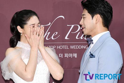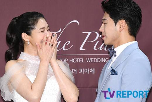 [TV리포트 = 문수지 기자] 배우 선우선, 이수민이 14일 오후 서울 강남구 논현동 뉴힐탑호텔 더피아체에서 열린 결혼식 기자회견에 참석해 포토타임을 갖고 있다.
