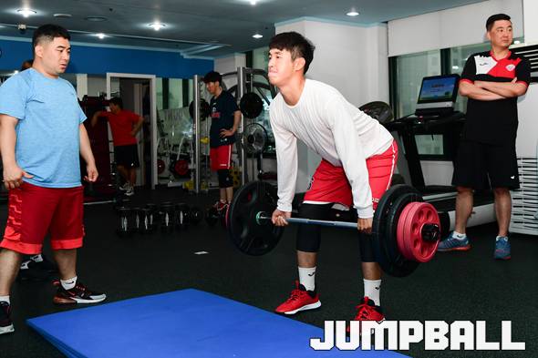 [점프볼=수원/박상혁 기자] 15일 수원 트레보 스포츠 컨디셔닝 센터에서 울산 현대모비스의 비시즌 체력훈련이 있었다. 현대모비스 김수찬이 웨이트 훈련을 하고 있다. 2019-07-15 박상혁(sea80288@naver.com)