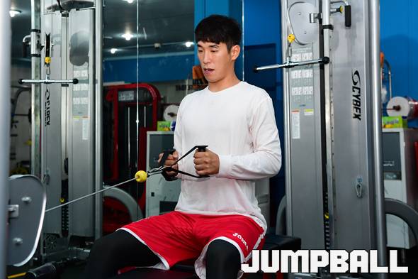 [점프볼=수원/박상혁 기자] 15일 수원 트레보 스포츠 컨디셔닝 센터에서 울산 현대모비스의 비시즌 체력훈련이 있었다. 현대모비스 김수찬이 훈련에 집중하고 있다. 2019-07-15 박상혁(sea80288@naver.com)