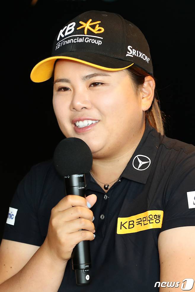 (용인=뉴스1) 조태형 기자 = 프로골퍼 박인비가 16일 오후 경기도 용인시 메르세데스 벤츠 용인 수지전시장에서 열린 '젝시오 Excellent Drive with 박인비' 행사에서 취재진의 질문에 답변하고 있다. 2019.7.16/뉴스1