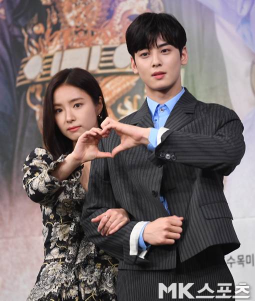 신세경과 차은우가 포토타임을 갖고 있다.