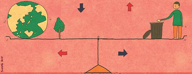 오랜 기간 큰 변화가 없던 지구의 기후가 산업혁명 이후 급격히 변하고 있다는 과학적 증거들이 엄연히 존재한다. 물리학의 역학적 평형에서 힘의 비김이 깨지면 물체는 가속도를 갖게 되어 속도가 점점 늘어난다. 음의 되먹임으로 유지되던 지구의 기후도 버틸 수 있는 한계를 벗어나면 양의 되먹임으로 폭주한다. 기온이 오르면 기온을 낮추는 방향이 아니라 거꾸로 기온을 더 오르게 하는 메커니즘이 촉발된다. 역학적 평형을 유지하려면 세심한 힘의 비김이 필요하듯이 지구의 항상성을 위해서도 우리 모두의 노력이 필요하다. 우리 모두의 안간힘만이 지구를 구할 수 있다.