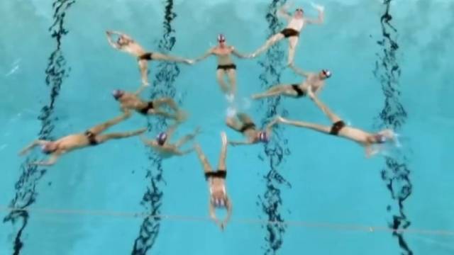 "수중 발레 연습이라니 놀랄 건 없지만 재밌는 건 바로 선수들이 고교 남학생들이라는 거죠."