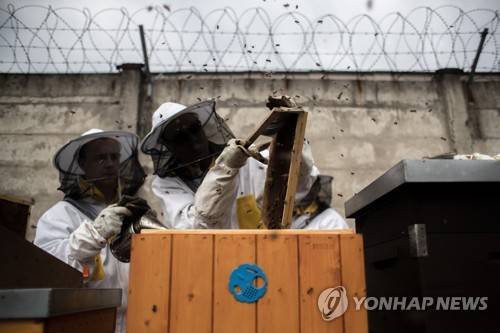epaselect epa07721714 Prisoners harvest honey from beehives at the courtyard of Hermanice prison in Ostrava, Czech Republic, 16 July 2019 (issued 17 July 2019). Hermanice is one of several prisons in Bohemia that are taking part in the Prison Beekeeping Program, an initiative of the Czech Ministry of Justice and the Prison Service. The prison is currently filled at 128 percent of its capacity, housing 867 prisoners instead of the intended number of 711. The inmates are incarcerated on offences ranging from driving offences to much more serious crimes like murder. The first bees have been introduced to Hermanice in April 2017. Not every inmate can take part in the beekeeping program. It is not possible for too many people to move around the hives, so the number of participants is limited. Three prisoners are ideal. Nowadays six inmates work in the program, two of them from the beginning. Beekeeping does not reduce the prisoners? sentences but it can affect their assessment. Prisoners can receive disciplinary remuneration for their activities, which affects their conditional release. The honey produced at Hermanice cannot be sold as the prison is not allowed to engage in sales activities. Instead the honey is donated as a gift to other organizations, and prisoners can give some of their product to relatives. The honey is called 'Brucoun' (lit.: The Grouch). It is slang referring to being 'in the clink'. The name was selected in a local newspaper survey. The logo was designed by the prisoners themselves. Last year the prisoners harvested 250kg of honey. This year they expect a harvest of only 100kg because of bad weather conditions. Hermanice Prison is in a good place for beekeeping as there are a lot of lime, maple and willow trees. The original hives were bought in; the others were made by the prisoners themselves. EPA/MARTIN DIVISEK ATTENTION: This Image is part of a PHOTO SET