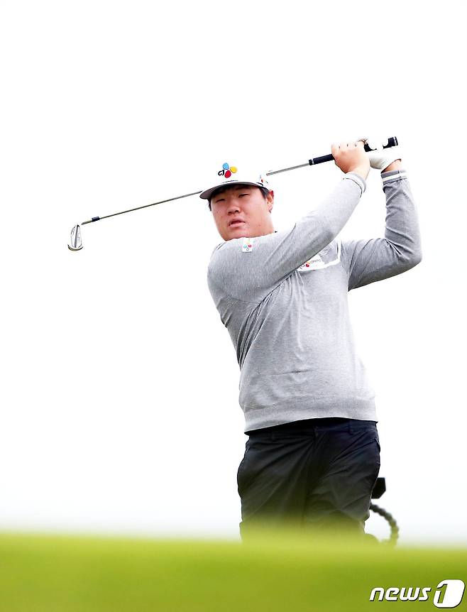 임성재가 17일(현지시간) 북아일랜드 포트러시 위치한 로열포트러시 골프클럽에서 제148회 더 오픈 연습라운드 3번 홀에서 세컨 아이언 샷을 하고 있다. (KGA 제공) 2019.7.18/뉴스1