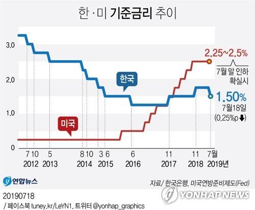 금융권 관계자는 "연준의 금리인하를 미리 반영해 한은도 금리를 내린 셈"이라고 말했다.