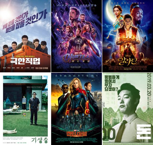 '극한직업'은 자영업자 소시민과 코미디를 내세운 차별화 전략으로 관객의 선택을 받았고, '기생충'은 칸영화제에서 한국영화 최초 황금종려상을 수상한 효과를 톡톡히 누렸다. 두 작품은 한국영화 관객의 45.4%를 차지할 정도로 반향이 컸다. 그러나 마냥 웃을 수만은 없었다. 500만~800만명대의 흥행 성공을 거둔 '중박' 영화가 사라지는 역효과도 발생했다. 미들급 한국영화가 실종되며, 흥행 양극화 문제가 더욱 심해지고 있는 경향을 보인 것은 숙제로 남았다.