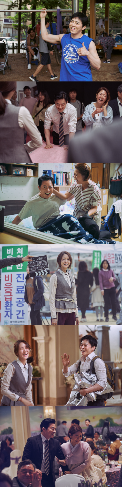 공개된 스틸에는 '엑시트' 촬영 기간 내내 온몸을 던져 고군분투한 조정석, 임윤아를 비롯해 고두심, 박인환, 김지영 등 주역들의 활약을 확인할 수 있다. 조정석의 현장 분위기를 주도하는 유쾌한 표정은 물론 주조연 배우 모두 활짝 웃는 모습으로 촬영에 임하는 모습이 눈에 띄며 훈훈했던 촬영장 분위기를 엿볼 수 있게 한다. 임윤아는 “조정석 배우가 현장 분위기의 1부터 10까지 모두 편안하게 해줘서 정말 감사했다”고 전하기도 했다.