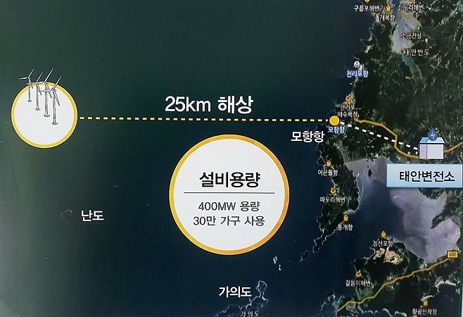 이에 (주)태안풍력발전 관계자는 "풍력발전기 사이의 거리가 700m에서 1km 정도다. 반경 5km 사업지에 배들이 자유롭게 왕래할 수 있다"며 "어업행위에는 아무런 문제가 없다"고 해명했다.