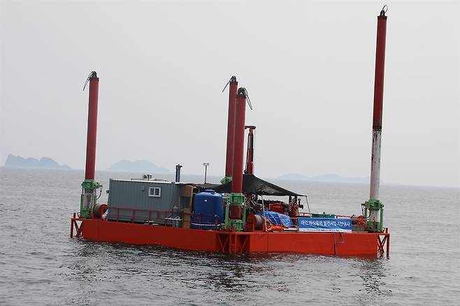 | ▲ 육지에서 25km 떨어진 공해상에서 풍향계측기 설치를 위한 작업에 이어지고 있다. |