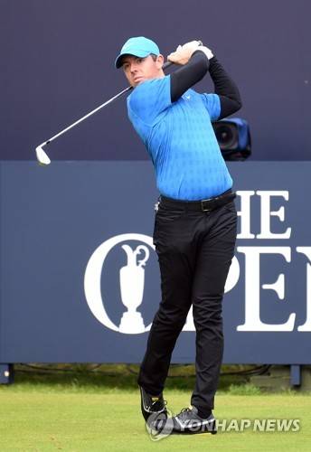 epa07724196 Rory McIlroy of Northern Ireland tees off on the first day of the British Open Golf Championship at Royal Portrush, Northern Ireland, 18 July 2019. EPA/AIDAN CRAWLEY