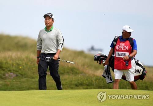 epa07729186 Yuki Inamori (L) of Japan approaching the green on the third day of the British Open Golf Championship at Royal Portrush, Northern Ireland, 20 July 2019. EPA/AIDAN CRAWLEY