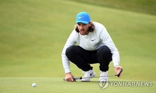 epa07729753 Tommy Fleetwood of England lines up a putt during the third day of the British Open Golf Championship at Royal Portrush, Northern Ireland, 20 July 2019. EPA/FACUNDO ARRIZABALAGA