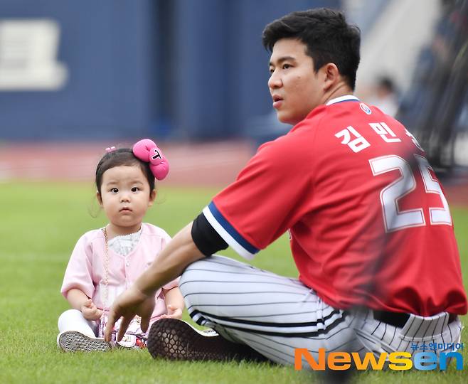 이날 LG 김민성이 딸과 함께 즐거운 시간을 가지고 있다.
