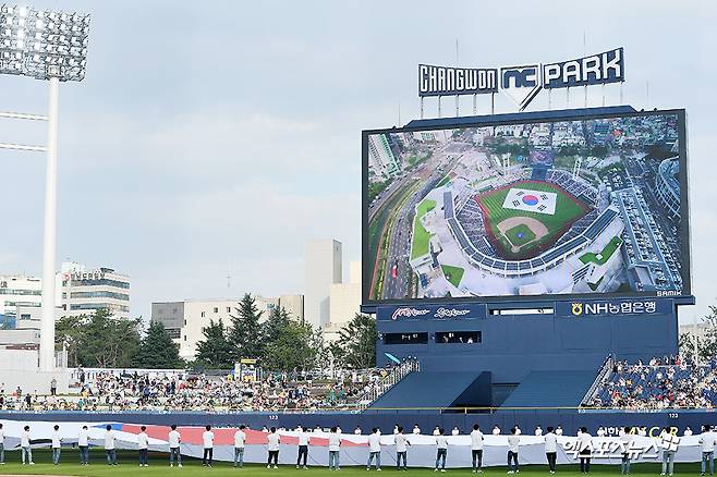 창원NC파크에 펼쳐진 대형 태극기[포토]