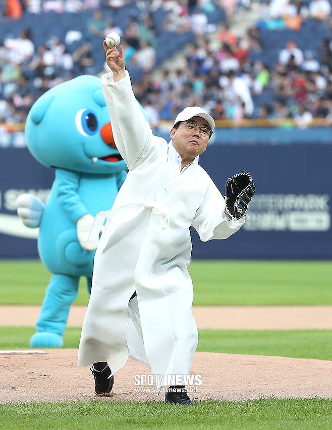 [스포티비뉴스=창원, 곽혜미 기자] 2019 KBO 리그 올스타전이 21일 오후 창원NC파크에서 열렸다. 허성무 창원시장이 시구를 하고 있다.