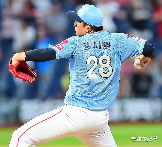 [엑스포츠뉴스 창원, 김한준 기자] 21일 오후 경상남도 창원NC파크에서 열린 '2019 KBO 올스타전' 드림 올스타와 나눔 올스타의 경기, 5회말 드림올스타 장시환이 공을 힘차게 던지고 있다.