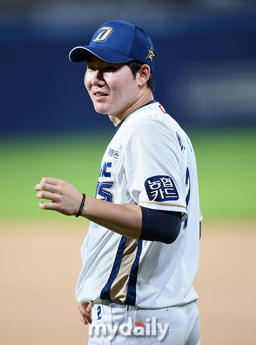 [마이데일리 = 창원(경남) 김성진 기자] 나눔올스타 박민우가 21일 오후 경남 창원NC파크에서 진행된 '2019 신한은행 MY CAR KBO리그' 올스타전 드림 올스타와 나눔 올스타의 경기에서 1루 코치로 경기에 임하고 있다.- ⓒ마이데일리(www.mydaily.co.kr). 무단전재&재배포 금지 -