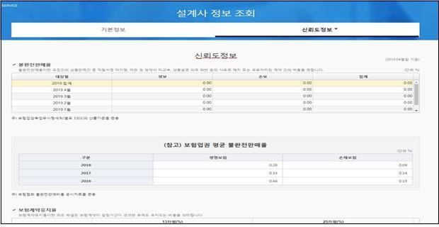 [ 설계사 미동의시 신뢰도정보 조회 화면 중 일부 ]