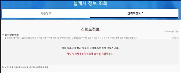 설계사가 신뢰도 정보 공개에 동의하지 않은 경우