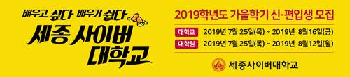 세종사이버대학교가 7월 25일부터 8월 16일까지 2019학년도 가을학기 2차 신·편입생을 모집한다고 밝혔다.