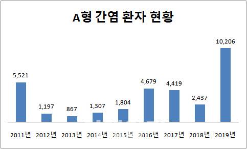 국내 A형간염 환자 1만명 넘어..통계집계 이래 최고