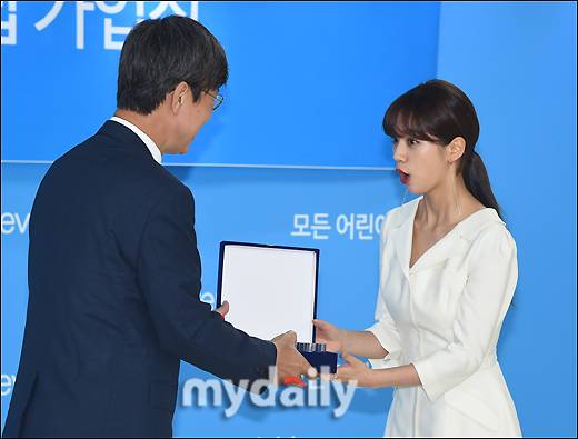 [마이데일리 = 송일섭 기자] 가수 겸 배우 혜리가 26일 오전 서울 마포구 유니세프 한국위원회 빌딩에서 진행된 '유니세프 아너스클럽 인증패 전달식'에 참석해 인증패를 받고 있다.