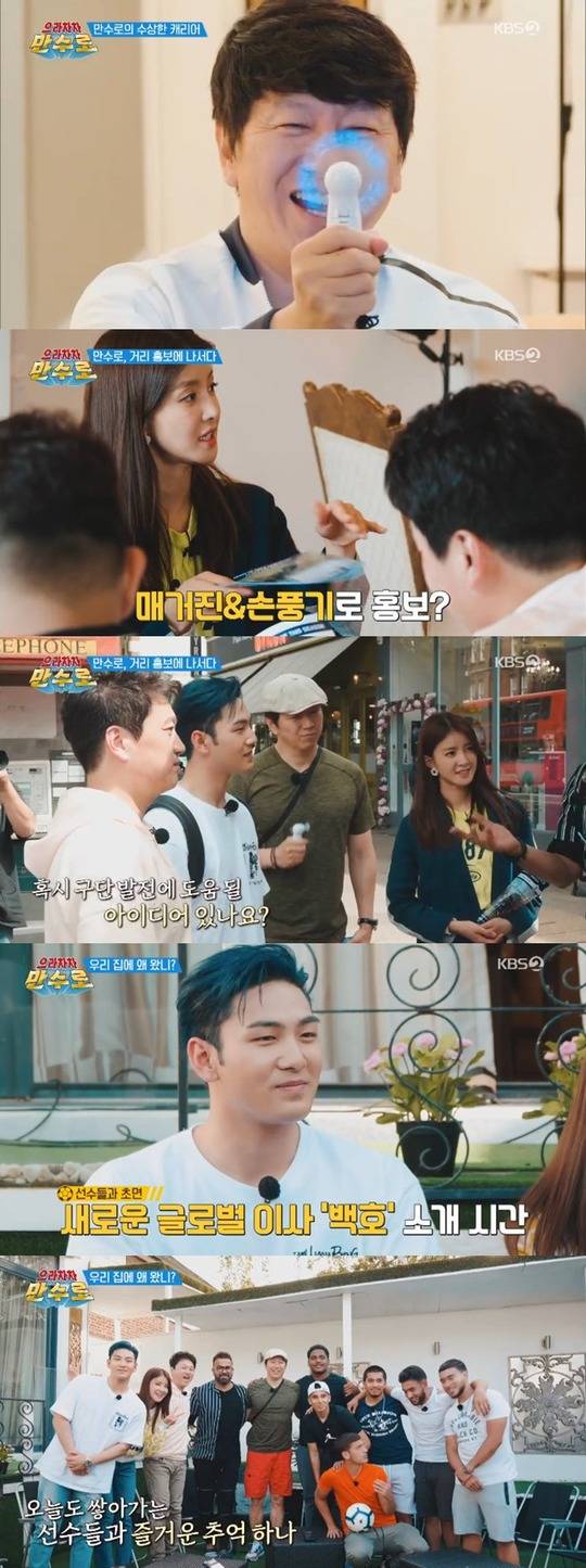 7월 26일 방송된 KBS 2TV 예능프로그램 '으라차차 만수로' 6회에서는 한달 만에 런던 보드진 숙소에 모인 멤버들이 새 시즌에 앞서 관중석 확보를 위한 홍보를 준비하는 모습이 공개됐다.
