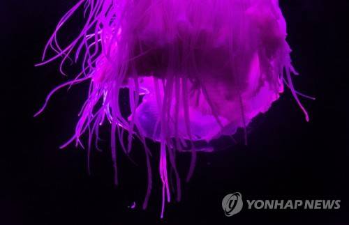 epa07753478 An extremely rare Pink Meanie jellyfish on display at the Two Oceans Aquarium in Cape Town, South Africa 02 August 2019. The Pink Meanie was discovered during a nightlight jellyfish dive by the Two Oceans Aquarium collections team in the waters around Robben Island and in Cape Town Harbour. It is extremely rare to find them in the waters around the Cape all other types that have been discovered inhabit warm waters like the Mexican coast and the Mediterranean. Pink Meanies are jellyvorous, meaning they feed on other jelly species by reeling them in with their long tentacles. Discovering the Pink Meanie in its early ephyra stage meant the team could study its growth rate which turned out to be very quick as it grew to the metaephyra stage in about a week and a half. The Mexican pink meanie (Drymonema larsoni) was only discovered in the year 2000. A Mediterranean relative, known as the Big Pink Jellyfish (Drymonema dalmatinum) has been known to science since the 1800s but when spotted in 2014 it had been almost 70 years since the last sighting. These jellies are incredibly rare and this new South African species is no exception. EPA/NIC BOTHMA